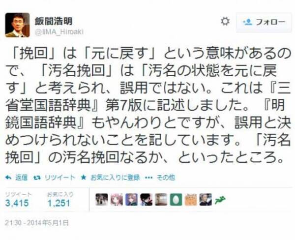 汚名挽回 は誤用じゃなかった 国語辞典編纂者のツイートが話題に 14年5月2日 エキサイトニュース